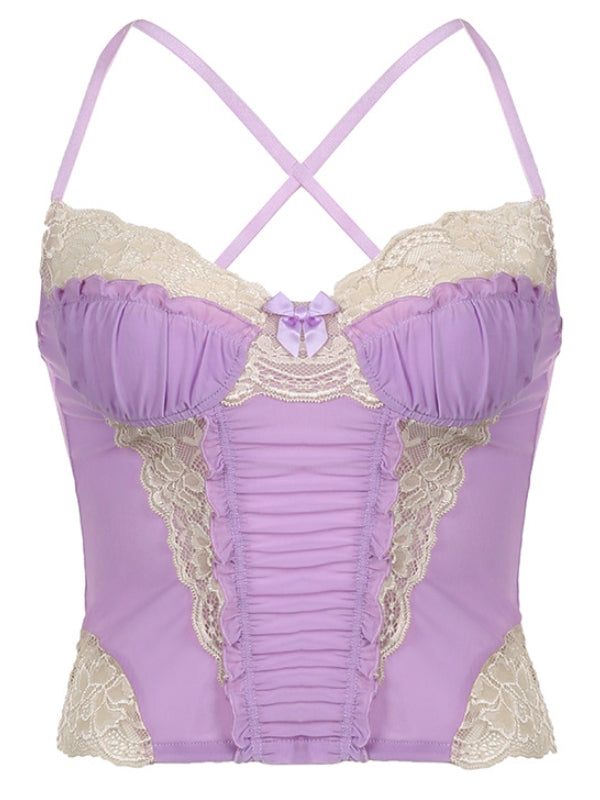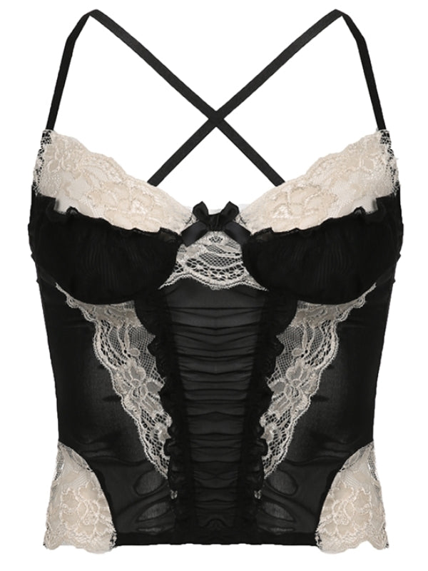 This feminine Coquette vintage lace camisole will make you feel confident and sexy. The delicate lace adds a touch of elegance while the form-fitting design flatters your figure. Perfect for layering or wearing on its own, this camisole is a must-have for any wardrobe.